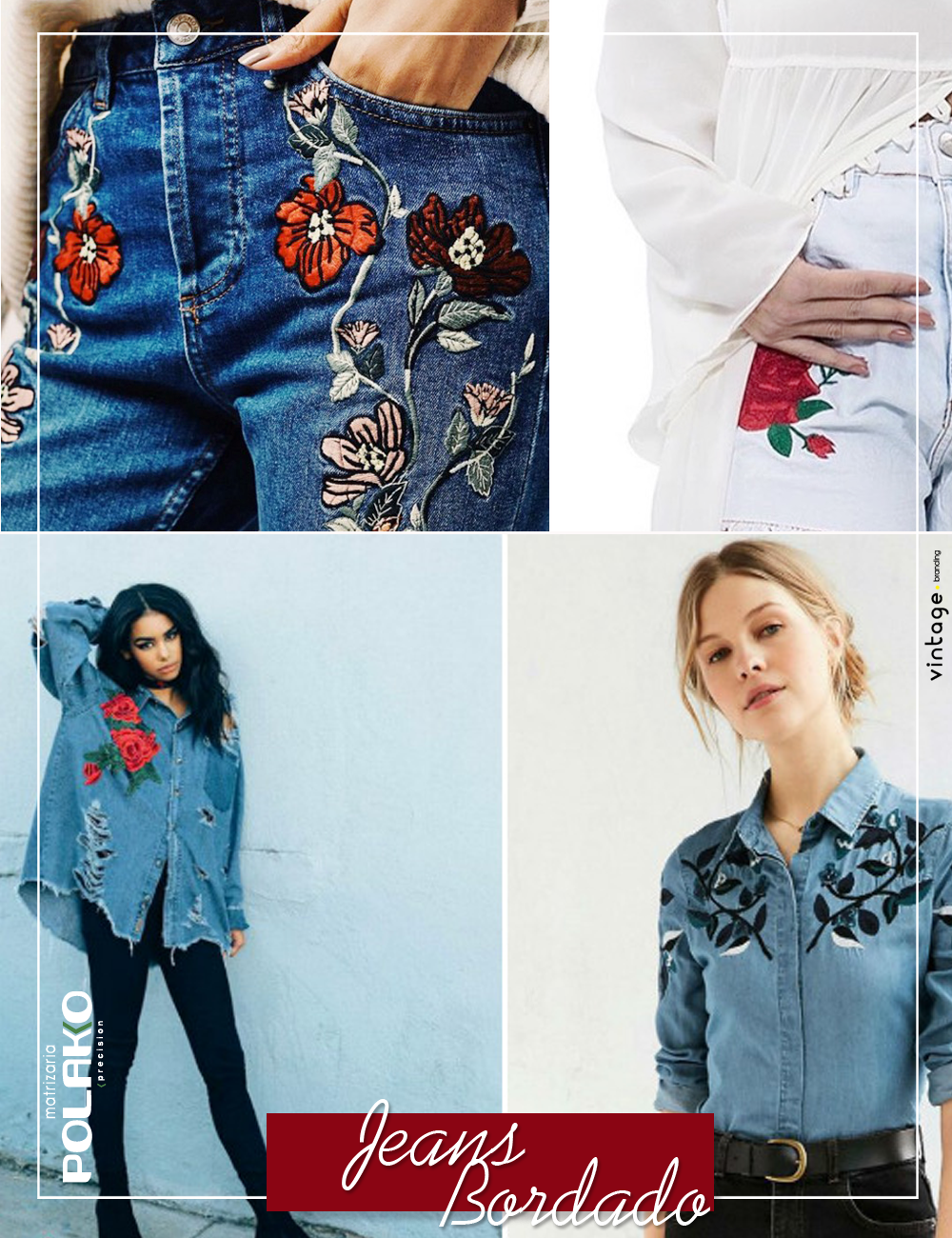 Você já deve ter visto em vitrines e pelas ruas que o jeans bordado é uma tendência – que voltou – e promete ser o hit deste inverno. O bordado é diferente do patches, visto que a arte faz parte da peça e em sua maioria deixa o look muito mais feminino e destacado, enquanto os patches criam um ar totalmente descolado e jovial.