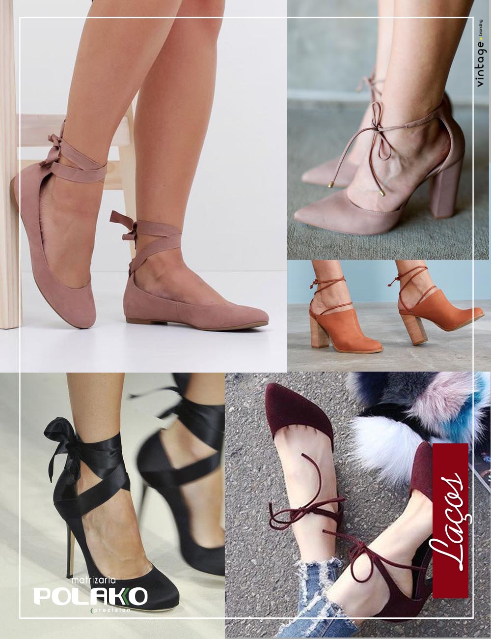 Seja nas rasteirinhas ou nos saltos altos, os laços e amarrações garantem um visual romântico e feminino e têm tudo para ser o ponto alto do look! Na hora de escolher, vale tudo. Os preferidos costumam ser as sapatilhas e espadrilhas, mas fitas e laços também vão bem em botas, scarpins e até mesmo nos mule!