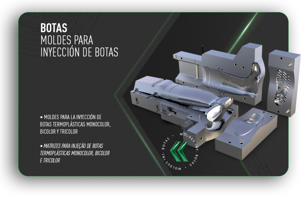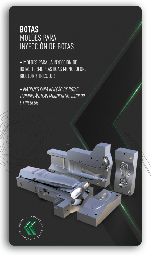 Moldes para inyección de PVC Monocolor, Bicolor o Tricolor, EVA y PU. El molde se elabora dentro de los estándares técnicos exigidos por el mercado de EPI, atendiendo a los segmentos de agroindustria, construcción civil y seguridad industrial, entregando un producto de alta calidad al cliente.