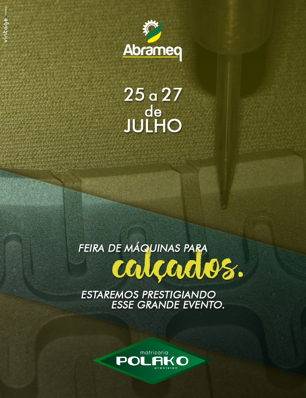 De 25 a 27 de julho estaremos prestigiando mais um evento da Abrameq. A Feria de Máquinas para Calçados é uma parceria entre a Associação Brasileira das Indústrias de Máquinas e Equipamentos para os Setores do Couro, Calçados e Afins, Sebrae e Painel, e ocorre na Transportadora Amazonas, em Franca-SP. O evento reúne as principais tecnologias voltadas para o setor calçadista e muitas novidades para a cadeia.